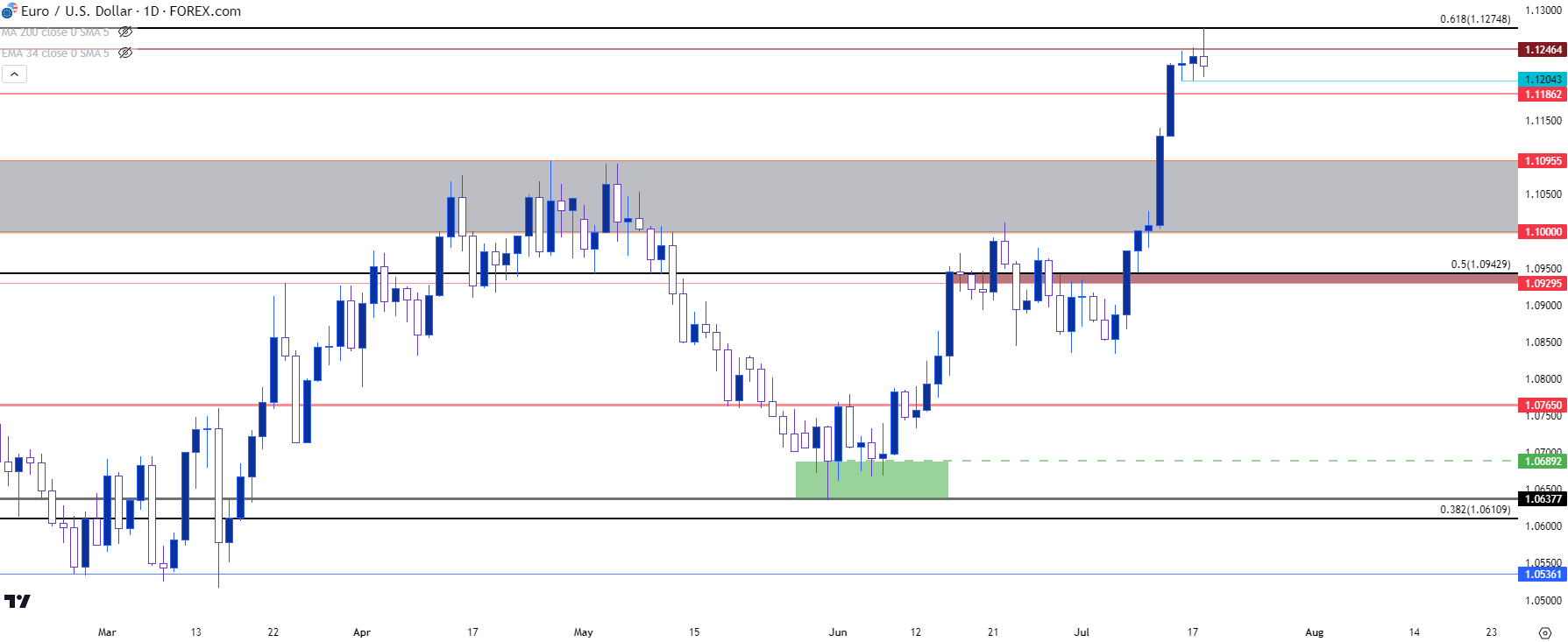 图表由James Stanley绘制,Tradingview上的欧元/美元