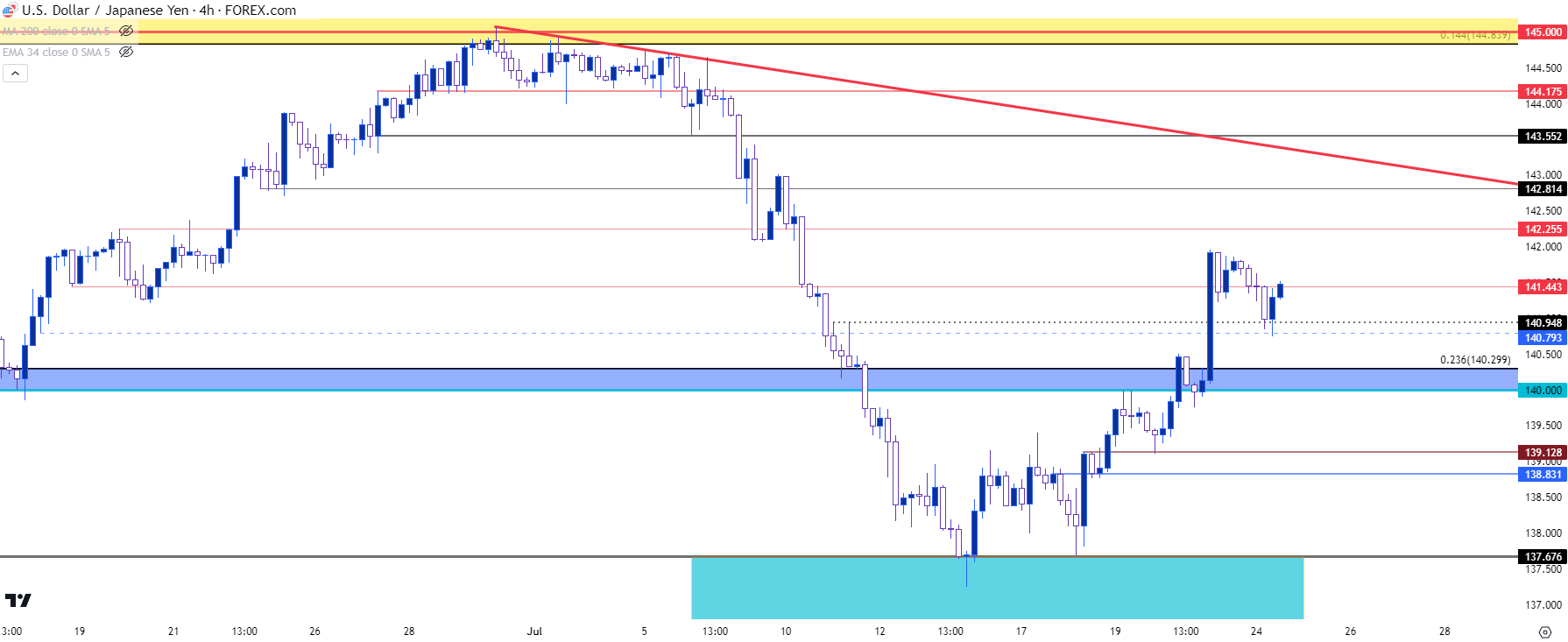 图表由James Stanley绘制,TradingView上的美元/日元,